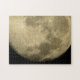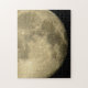 Photography: A part of the full moon with a lot of craters over a puzzle.