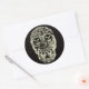 This image is a skull that looks like a moon with many different images of things that happen on all hallows eve. The more you look, the more you will find in this images within a image.