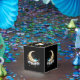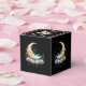 A wonderful and vibrant 3D looking luna moon is floating above glowing blue grey fluffy clouds that have small stars twinkling in them. The crescent moon is framed by a faux gold circle set on a midnight black background that may be changed to any colour of your choice. Editable white templates appear above and below the graphic. Ideal for a moon and stars wedding; for your special starry night themed anniversary or for any wiccan business; lodge or resort.