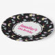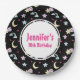 Moon, Stars and Clouds Pattern on Black Birthday Paper Plate