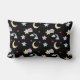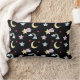 Moon, Stars and Clouds Pattern on Black Lumbar Cushion