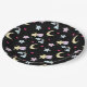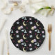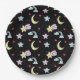 Moon, Stars and Clouds Pattern on Black Paper Plate