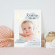 A playful yet elegant design featuring you photo in a modern arch shape paired with elegant fonts, hand-drawn stars, clouds, and a crescent moon. The back features a 3 photo collage and more stars. Be sure to visit the collection to see more.