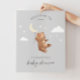 A sweet watercolour bear, holding a moon shaped balloon. It is surrounded by stars and clouds - perfect for your teddy bear themed baby shower!