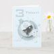 Pastel Blue/grey space graphic with rocket, moon and stars. Customisable age.