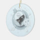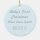"Baby's First Christmas" Hanging Ornament. Pastel Blue/gray space graphic with rocket, moon and stars. Customize the name and year to suit. Great for birthdays, christenings or newborn baby gifts - good for hanging on the Christmas Tree.