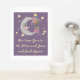 This whimsical storybook style design was created using my hand painted charming man in the moon adorned with pastel flowers tied with a sweet bow and surrounded by more moons, stars, and florals in delicate lavender purple complimented by soft pinks, lilac purple, light blue, and the grey tones of the moons and stars. It has real foil accents in your choice of gold or silver! Find more coordinating items in my Celestial Garden Over the Moon Baby Shower Collection.