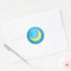 A pale yellow moon in the shape of a crescent is on a starry, blue, textured background.