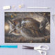 Masterful owl portrait with photorealistic feather detail and mystical night lighting. Golden orbs and full moon create ethereal atmosphere, perfect for dark academia or enchanted spaces.