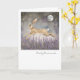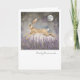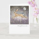 This charming blank greeting card features a whimsical illustration of a spotted hare leaping gracefully across a moonlit landscape. Soft lavender fields stretch beneath a starry night, evoking a serene and magical atmosphere. The artwork is delicate and folk inspired, capturing a sense of movement and gentle elegance.