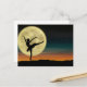 Dramatic and inspiring postcard features ballet dancer silhouette against full moon and night sky landscape