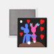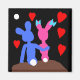 2 rabbit soul mates are sitting on a boulder by the moon.