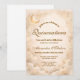 A luminous celestial design featuring delicate crescent moons and scattered constellation stars across a warm parchment background. A refined gold border frames the composition, while elegant script typography creates a graceful focal point worthy of such a meaningful milestone. The soft ivory and champagne tones give the entire piece a timeless, radiant glow. Perfect for a quinceañera celebration that feels romantic, elevated, and touched by starlight.