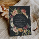 Chic floral wedding invitations or fall or winter weddings feature your details encircled by watercolor roses, mums and greenery in rustic autumn colours including peach, ivory, blush, burgundy and green on an elegant off-black background. A modern and elegant design for rustic chic weddings in the fall or winter months.