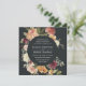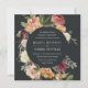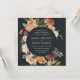 Our Moonlight Garden wedding invitation in a unique square format frames your wedding details with a circle of painted watercolor roses and mums in autumn shades of burgundy, marsala, blush pink and peach, with dark green foliage and leaves. An elegant choice for fall or winter weddings, with a dramatic off-black background and rich colours.