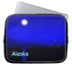 Moonrise in the Inside Passage off the coat of Alaska. Mountains in the distance and a fishing boat heads north. Text reading "Alaska" also appears in glowing blue and white.