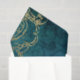 Right side version for matching doors. "Moonlight Peacock n Feathers Teal Gold Decoupage Tissue Paper." One of Audrey Jeanne's most loved paintings now available in tissue paper to decoupage! This peacock is mysterious and elegant with gilded scrollwork, Peacock feathers and a midnight blue, teal and aqua background. Painted in oil pastel by internationally licensed artist and designer, Audrey Jeanne Roberts, copyright.