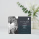 Add your own engagement photo alongside elegant script typography for names, date, and event details. Printed in rich hues of blue, teal, grey, and white, this customisable postcard offers instant sophistication and romance—no envelopes required.