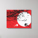 Moonlight Swallows Silhouette Red Wrapped Canvas
