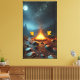 Be transported to a serene night with this realistic campfire scene under a starry sky, watched over by a soft moon in the background. The vivid flames cast a warm glow on two empty chairs, inviting you to sit down and enjoy the calm and warmth of the evening. The golden light dances on the rugged ground, creating a magical contrast between light and darkness. Perfect as a canvas print to bring a peaceful, natural, and cosy ambiance into your home.