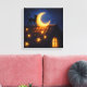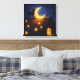Moonlit Cat on Starry Rooftop Canvas Print