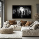 This mesmerising black and white city skyline captures the dramatic presence of a full moon hanging over towering skyscrapers, bathing the urban landscape in an ethereal glow. The monochrome palette enhances the bold silhouettes of the buildings, creating a striking contrast between the towering dark structures and the soft moonlight. Perfect for any modern home, this stunning piece brings an abstract yet captivating urban scene to life, blending minimalist design with intricate details. Ideal for lovers of contemporary art, cityscapes, or anyone seeking a piece that balances elegance and edge.