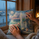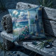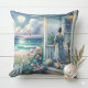 Moonlit Cottage Porch by the Sea Cushion