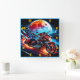 A sleek motorcycle speeds down a scenic road, flames trailing behind it, set against a vibrant full moon and the American flag.