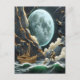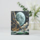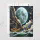 A lone fisherman casts his line under the glow of a large moon, nestled between towering cliffs. A small sailboat is anchored nearby, with waves gently crashing around it. The scene is surreal and ethereal, with a dreamlike quality.