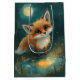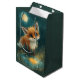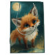 A sweet, wide‑eyed fox sits beneath a glowing yellow moon, surrounded by soft blue night tones and gentle wisps of grass. The illustration blends warm orange fur with cool, dreamy colours, creating a cosy, magical woodland atmosphere. Perfect for anyone who loves whimsical wildlife art and serene nighttime scenes.
