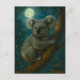 A quiet moment unfolds beneath a star-speckled sky in this dreamy wildlife art print featuring a koala perched on a tree branch. Illuminated by the soft glow of a full moon, the koala’s textured fur and expressive eyes reflect both curiosity and calm. Fireflies drift gently through the night air, while lush green leaves and vibrant blossoms frame the scene with colour and life.