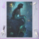 A glowing mermaid sits on a rock under lantern light, her tail shimmering with magical sparkles.