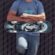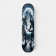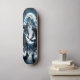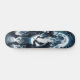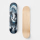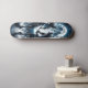 This skateboard design captures a fierce duel between two samurai warriors under the moonlight, their katanas clashing in an intense combat. The moonlight casts dramatic shadows, highlighting the details of their armour and expressions of focus and determination. The setting includes hints of a traditional Japanese garden or temple, adding depth and context. The moody and atmospheric colour scheme, with shades of silver, black, and dark blues, emphasizes the tension and beauty of the samurai duel, embodying the essence of samurai combat.