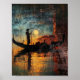 The painting captures the enchanting reflection of moonlight on the water, its glow filtered through a texture that mimics the patina of a dream. The palette is rich with the deep blues of the night and the warm ambers of the city's glow, a contrast that is both striking and harmonious. The artwork's surface, reminiscent of rain on a windowpane, adds a layer of intimacy and immediacy, as if we are voyeurs to this quiet, magical moment.