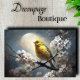 Transform everyday furniture into poetic showcases with this ethereal yellow warbler design. This version offers a more dramatic moonlit atmosphere than its companion pieces, with the bird's brilliant yellow plumage creating a striking focal point against the misty grey-blue background. The cherry blossoms appear almost luminescent in the moonlight, their delicate petals rendered with crystalline clarity. The composition creates a perfect balance between the bright, hopeful presence of the bird and the dreamy, contemplative mood of twilight.