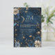 This enchanting celestial wedding design blends a deep midnight sky with glowing golden stars, soft moonlight, and richly detailed florals for a strikingly romantic aesthetic. The painted night sky creates a magical atmosphere, while the gold botanical accents add luxurious warmth and depth. Perfect for couples seeking an elegant celestial theme with a touch of whimsy and artful sophistication.