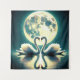 This enchanting tapestry captures the tender moment between two swans as they create a heart-shaped silhouette against the backdrop of a luminous full moon. The moon's reflection on the serene water adds a layer of tranquillity, while the surrounding stars sprinkle the night sky with a hint of magic. The artistry of the scene lies in its use of light and shadow, creating a soft, painted texture that conveys both romance and peace. This piece is perfect for adding a touch of elegance and serenity to any space, making it ideal for lovers of nature, romance, and wildlife art.