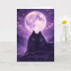 This greeting card features two wolves resting together under a luminous full moon, surrounded by a dreamy purple night sky and soft forest silhouettes. The gentle glow and rich tones create a peaceful, emotional atmosphere that beautifully expresses love, loyalty, and togetherness.