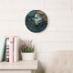 Wall Clock, 25.4 cm Round Black Wooden Frame