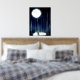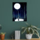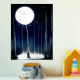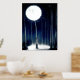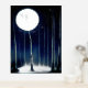 Stylish foil print with artwork of the moon lighting up a forest of birch trees enhanced with silver foil.