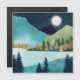 A beautiful landscape with unique textures showing a mountain lake landscape with a rising moon and starry sky in shades of blue, gold, green, and turquoise.