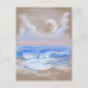 This pastel artwork features a pale moon rising above a cloud bank in the evening sky over waves breaking on the shore in Myrtle Beach, SC.