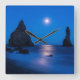 Moonrise Reflection | Iceland, Reynisdrangur Square Wall Clock