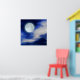 Moonscape print - mixed media graphic design, digitally enhanced photographic montage of the full moon, surrounded by a faint halo, against a deep blue night sky and moonlit clouds