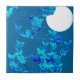 A flight of blue butterflies and moths against a deep blue night sky - fantasy moonscape print