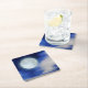 Moonscape print - mixed media graphic design, digitally enhanced photographic montage of the full moon, surrounded by a faint halo, against a deep blue night sky and moonlit clouds paper coasters
