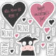 Cute Moooo Mine Love + Valentines custom-cut sticker set created for you! Pink and black little hearts, simple minimal “Mine” text stickers, tiny little question marks and exclamation mark stickers and a Happy Valentine’s Day and Will Mooo be mine? in a pink and black heart respectively.