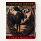 This striking wood carving features a majestic moose standing proudly in front of towering mountains and a tranquil lake, surrounded by dense trees, capturing the essence of nature's beauty.