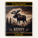 Moose carving in dark wood with backdrop notebook