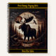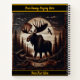 A beautifully crafted moose stands proudly against a full moon backdrop, surrounded by towering trees and a silhouette of a bird.